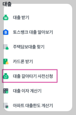 1. 대환대출 이용절차- 대출비교 플랫폼 또는 금융회사 앱 내 대환대출 서비스(대출 갈아타기)를 선택합니다.