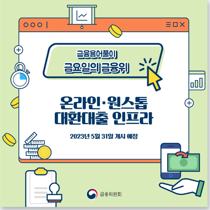 5월 31일부터 은행등에서 받은 기존대출을 온라인에서 낮은 금리의 다른 금융회사 대출로 손쉽게 갈아탈 수 있는 ‘대환대출서비스’가 출시합니다.