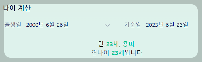 2000년 6월 26일생인 경우 25살이 아니고 , 23세 나이로 통일해서 말하면 됩니다.