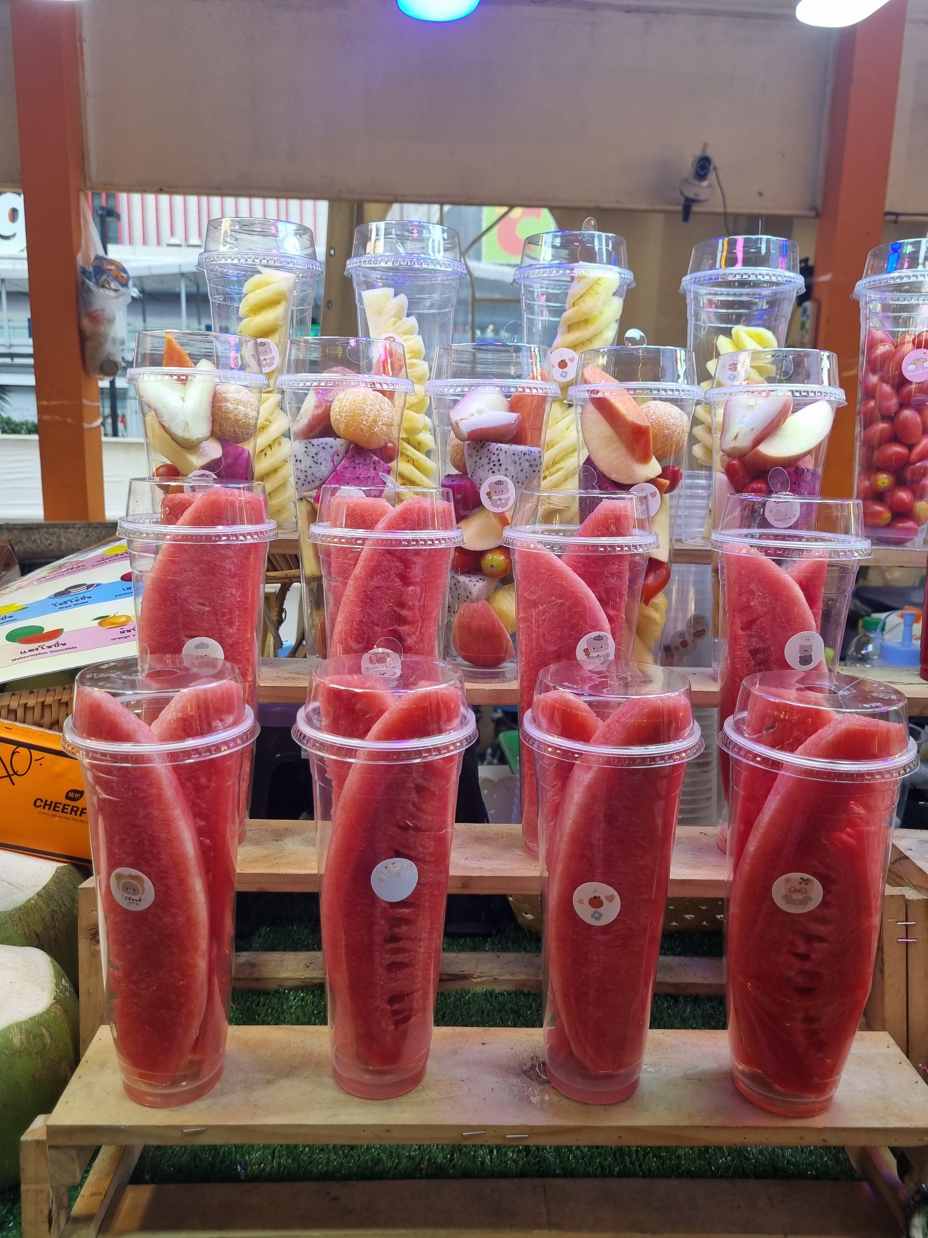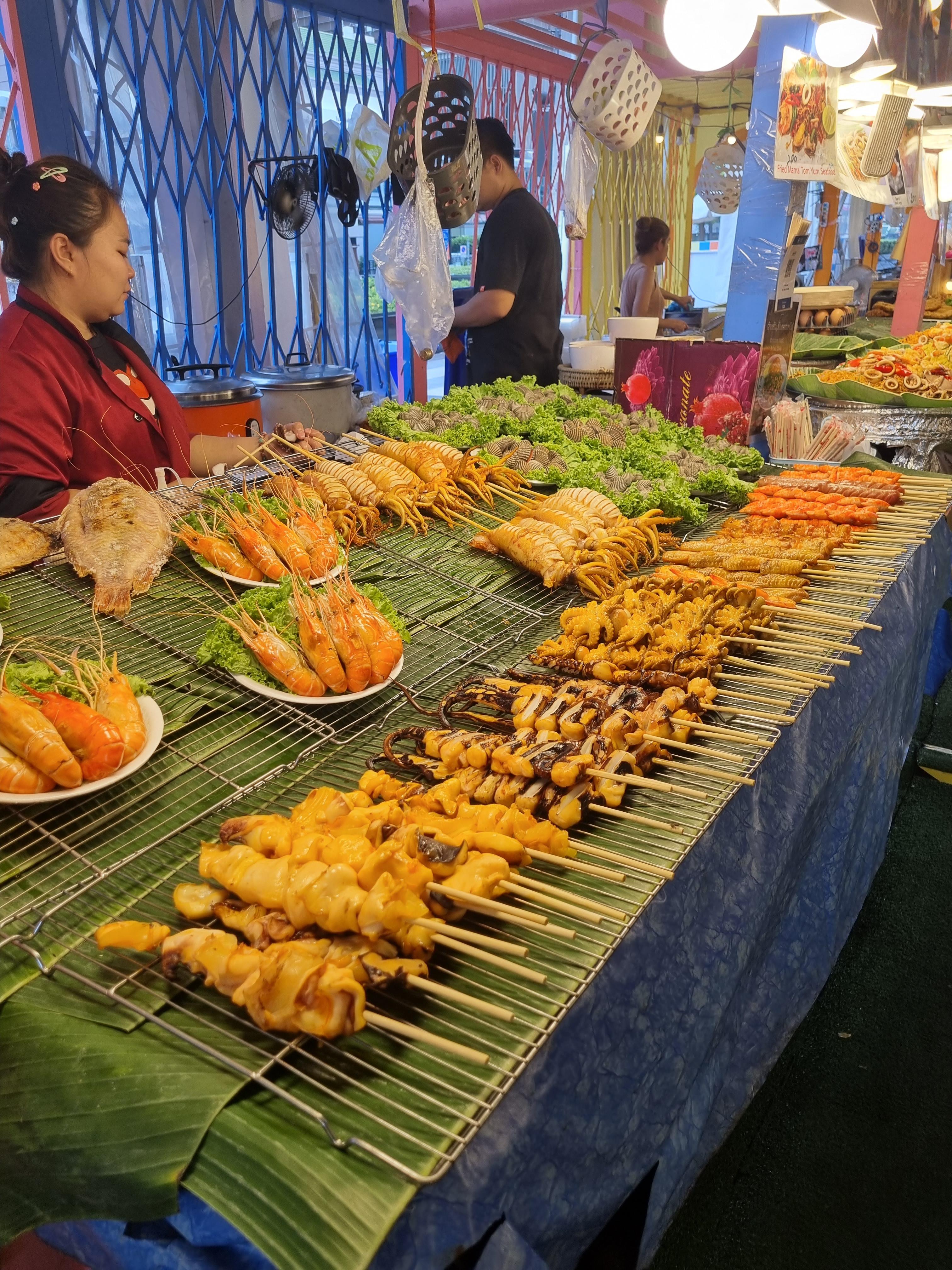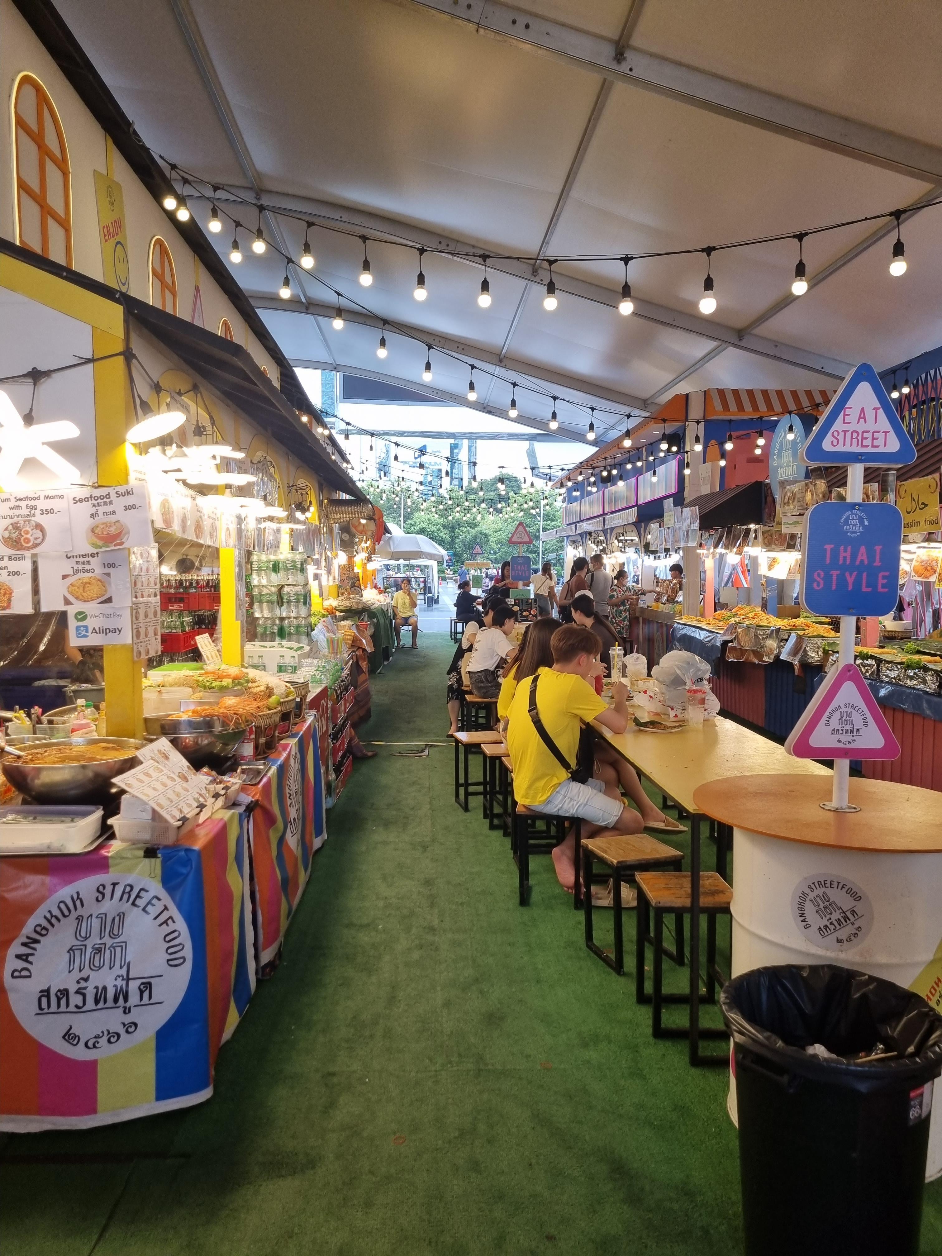 센트럴월드 쇼핑몰 정문 앞에 야시장처럼 꾸면 놓은 부스에서 음식을 팝니다.