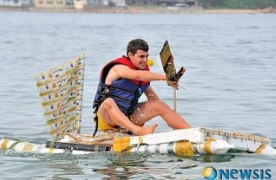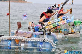 재활용품을 활용해서 기발한 배를 만들어 사람 한 명을 태워 바다에 띄우면 된다고 합니다.