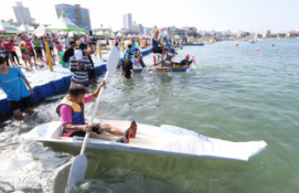 기발한 배 콘테스트는 재활용품을 활용해 배를 제작하는 행사로, 콘테스트 부문과 레이싱으로 나눠 진행합니다.