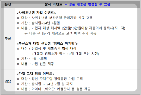 부산은행은 출시기념으로 5월 말까지 10만 원 이상 신규 가입하고 10만 원 이상 자동이체를 등록하면 선착순 500명을 대상으로 2만 원 캐시백을 제공예정이고,