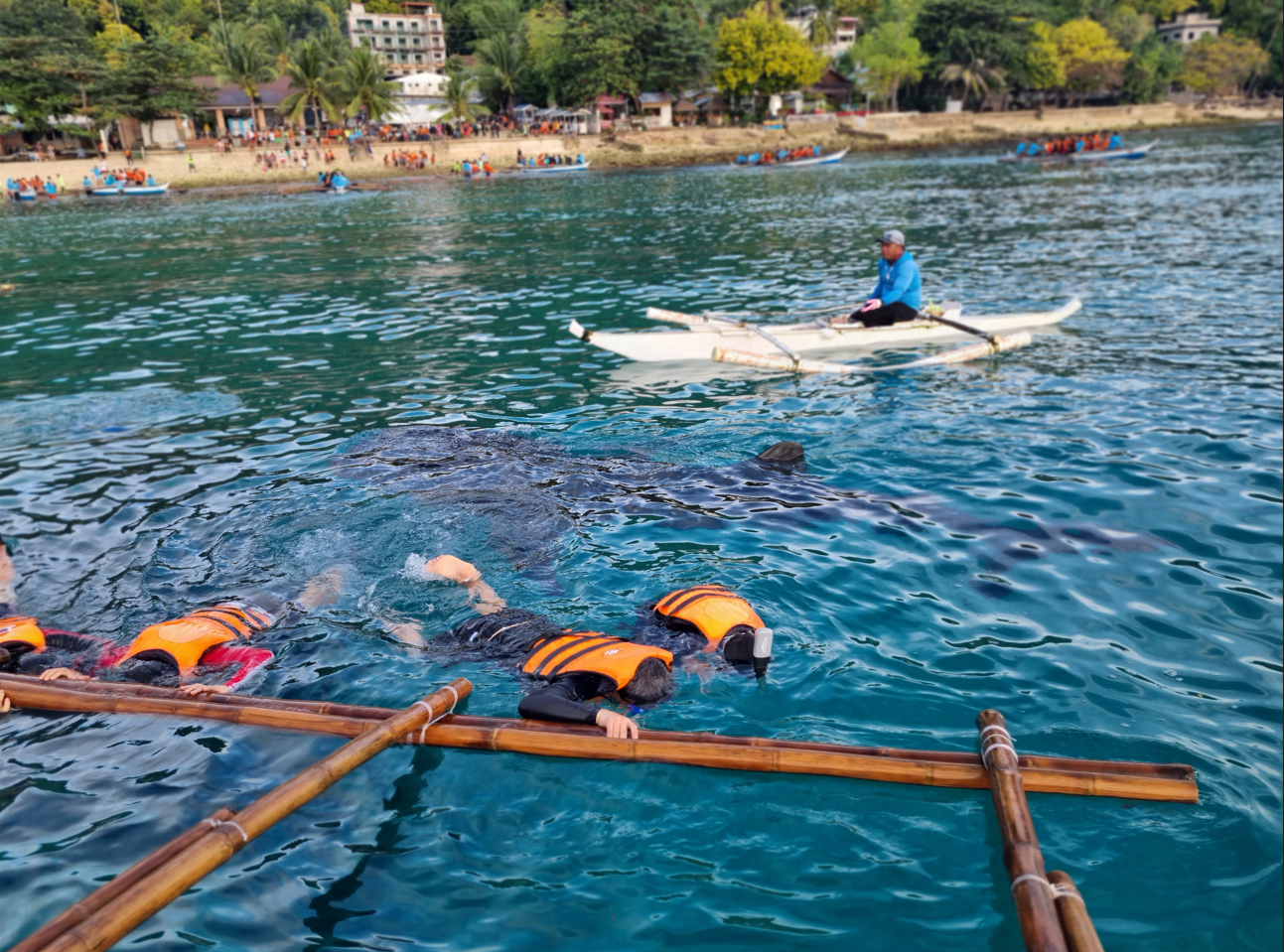 고래상어를 찍기 위해서 현지인들이 캠으로 찍어주시는데