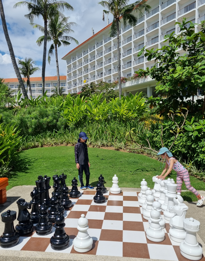 큰 체스판에서 말을 움직이는 남매가 귀여워서 사진 한 컷 찍었네요~