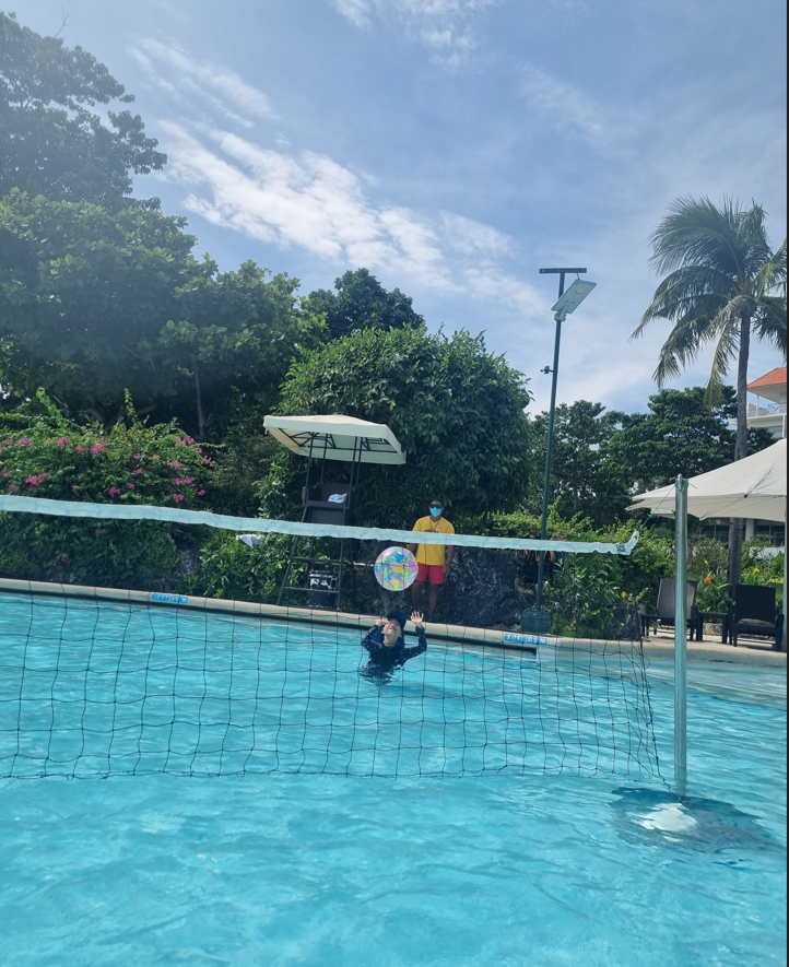 메인풀에 미끄럼틀도 있고, 피구 할 수 있는 그물망도 있어서 아이들이 다양하게