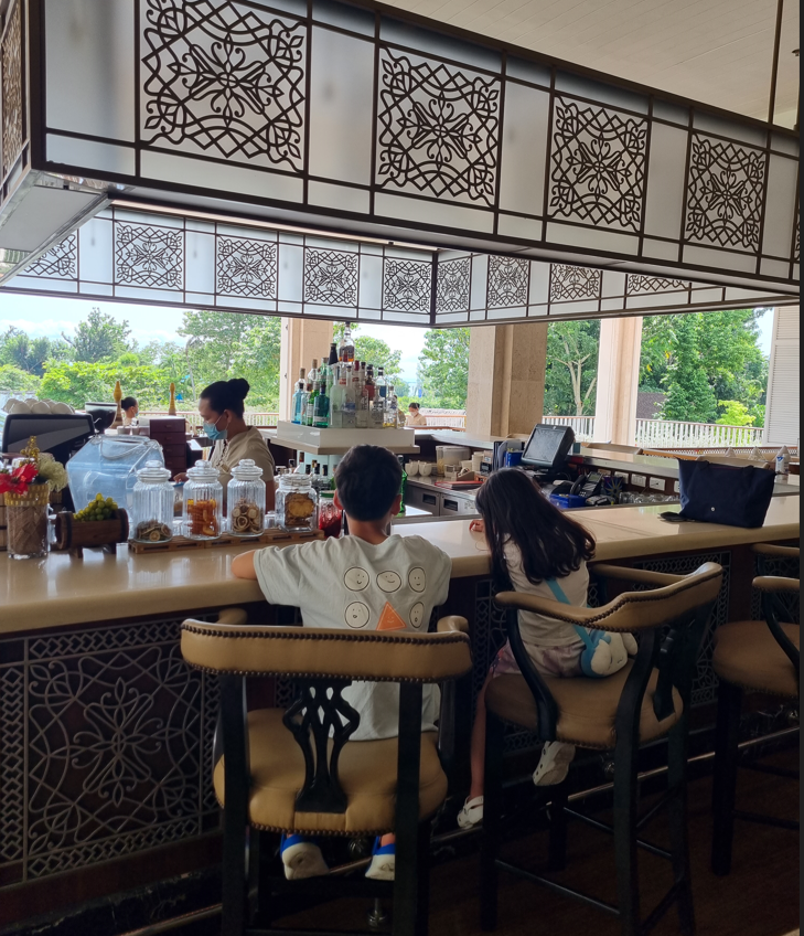 남편이 체크인하는 동안 날씨가 더워서 아이들과 로비에 있는 카페에서